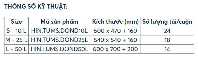 - Dẻo dai, co giãn tốt, độ dày túi 50 µm, hạn chế thủng rách